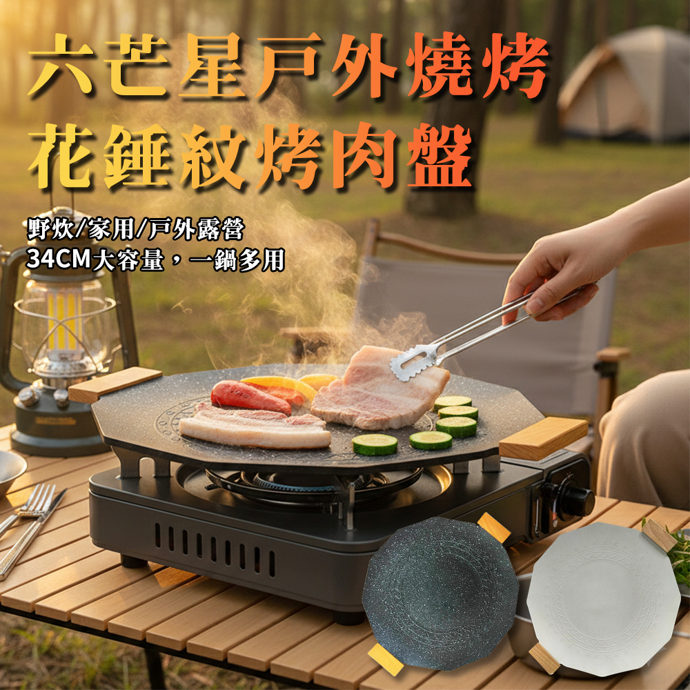 六芒星戶外燒烤花錘紋34cm烤肉盤 (2色任選)