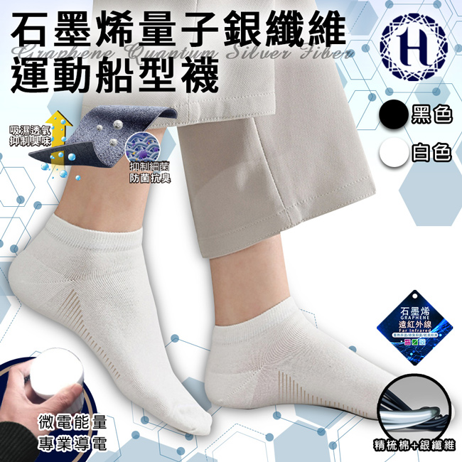【Hilton 希爾頓】量子銀纖維石墨烯防菌除臭船型襪*2雙 (下單請備註顏色)