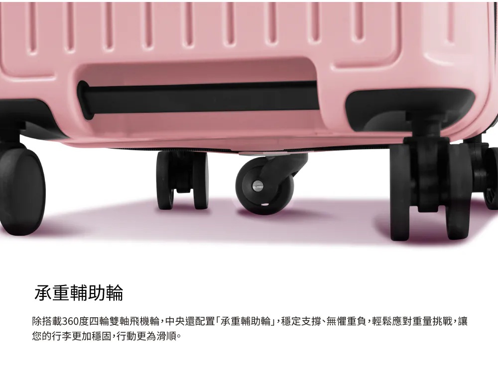 ‧配件:五輪承重輪設計、雙輔助手把、拉桿手機支架、TSA海關密碼鎖、防爆拉鍊