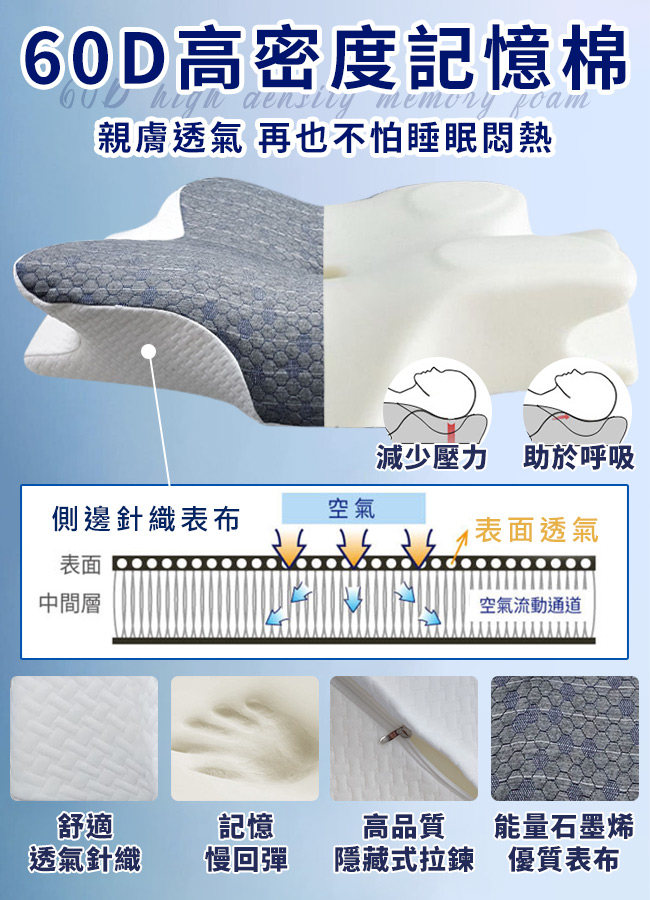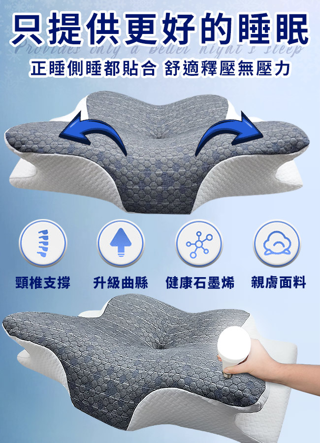 產品名稱::【Hilton 希爾頓】超導石墨烯蝶型慢回彈釋壓記憶枕