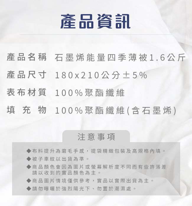 產品名稱:石墨烯能量四季薄被1.6公斤