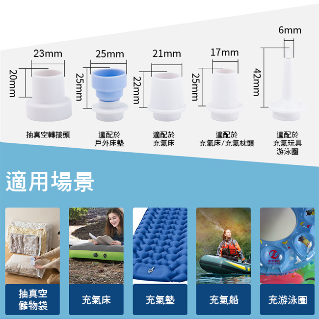 適用於:充氣床、充氣墊、瑜珈球、皮划艇、居家衣物收納抽真空