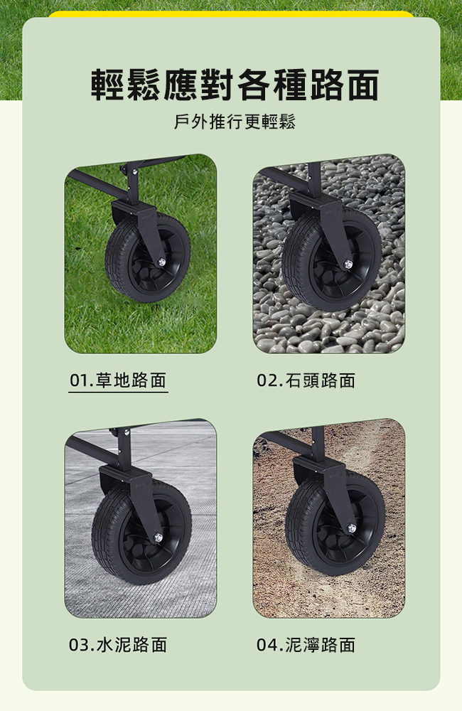 前輪360度方向輪,適用於各種地形