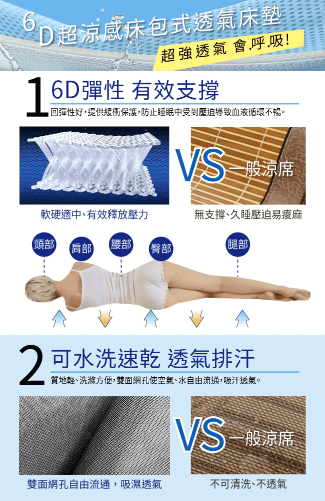 ★立體防螨透氣網層床墊,立體支撐結構,韌性耐用 ,完美支撐