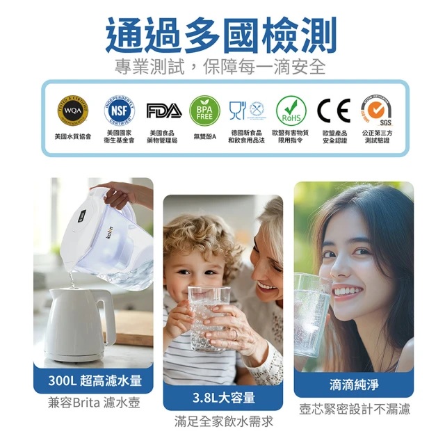 【內容物】濾水壺x1、濾芯 x2、說明書、保固卡 x1