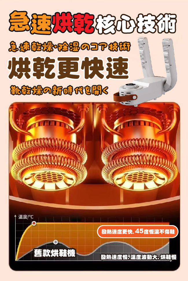 ◆智能雙臂設計,在鞋內循環受熱,核心技術加速烘乾