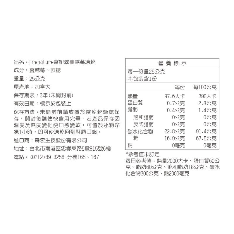【Frenature 富紐翠】 蔓越莓凍乾*6包組(有效期限2026/09)