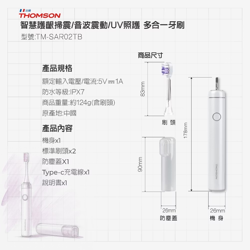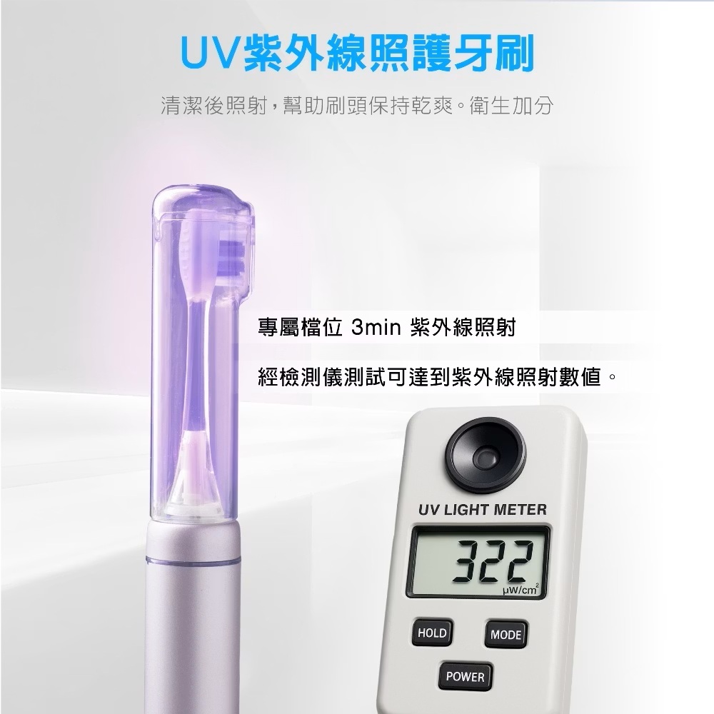 搭載UV燈輔助刷頭乾爽,刷牙更衛生