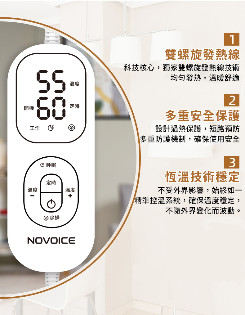 【NOVOICE 諾維斯】豪華法蘭絨銀離子雙人電熱毯 (NOV-H11)