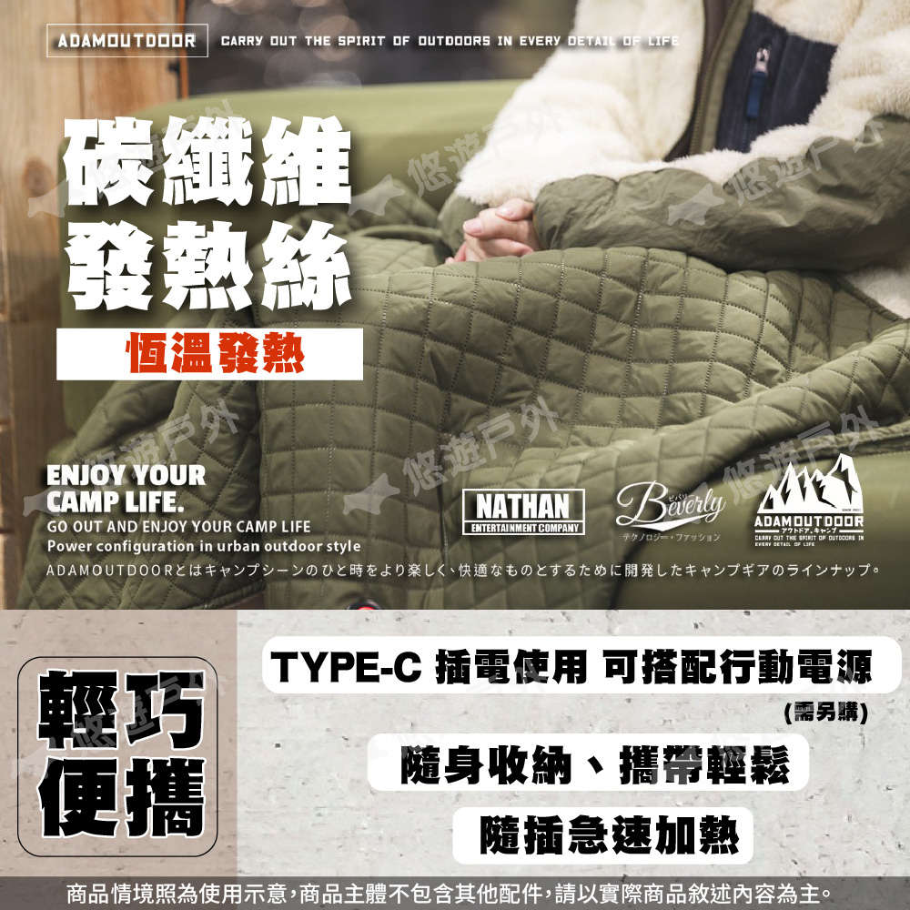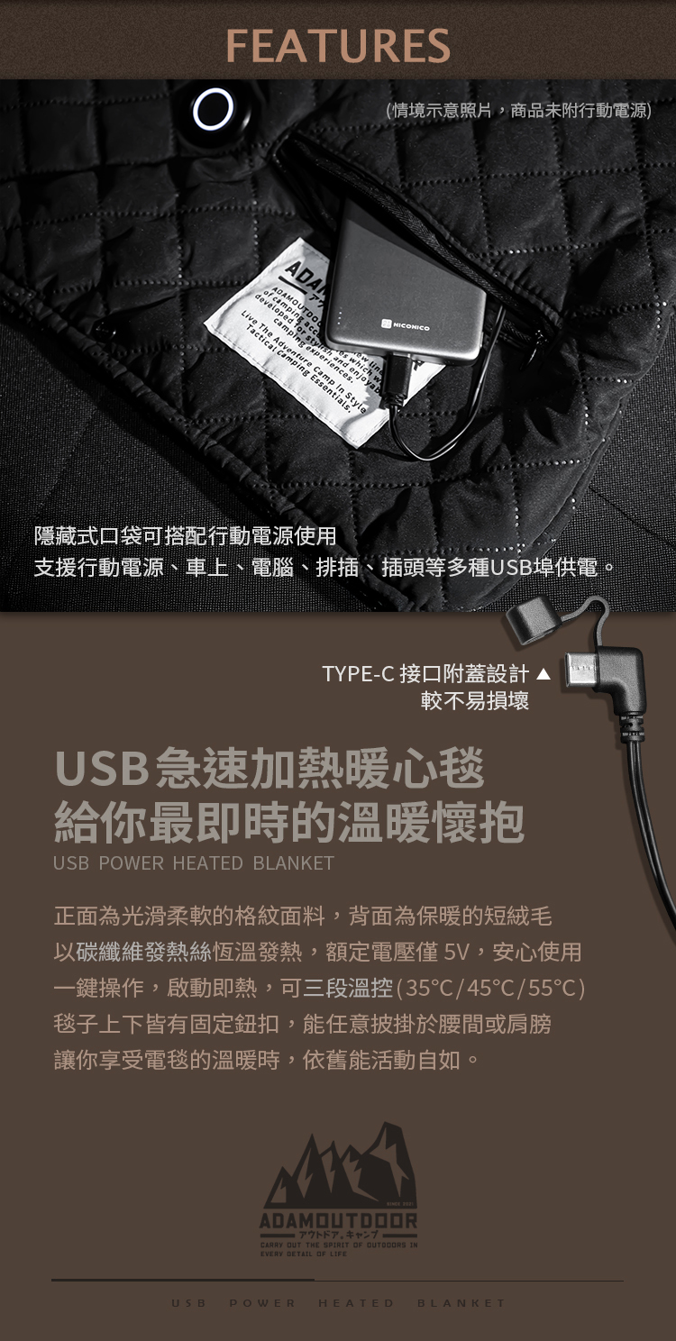 【ADAMOUTDOOR】USB急速加熱暖心毯 ( ADHB-USB1170 ) 三色任選