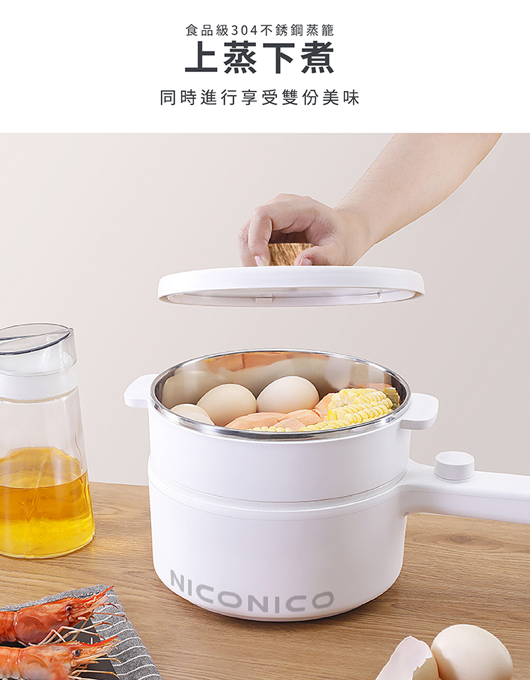 •配件:主機x1、蒸籠x1、玻璃鍋蓋x1、電源線x1、說明書x1、保固書x1