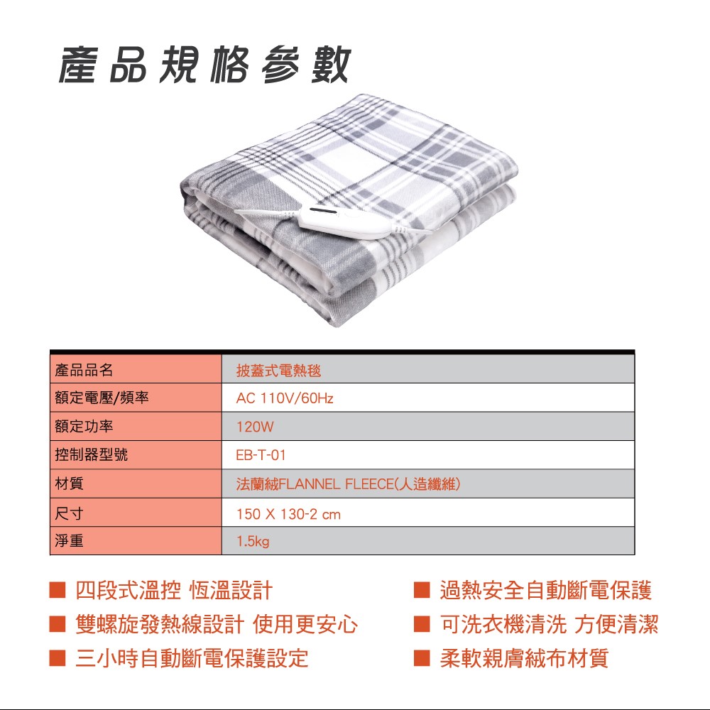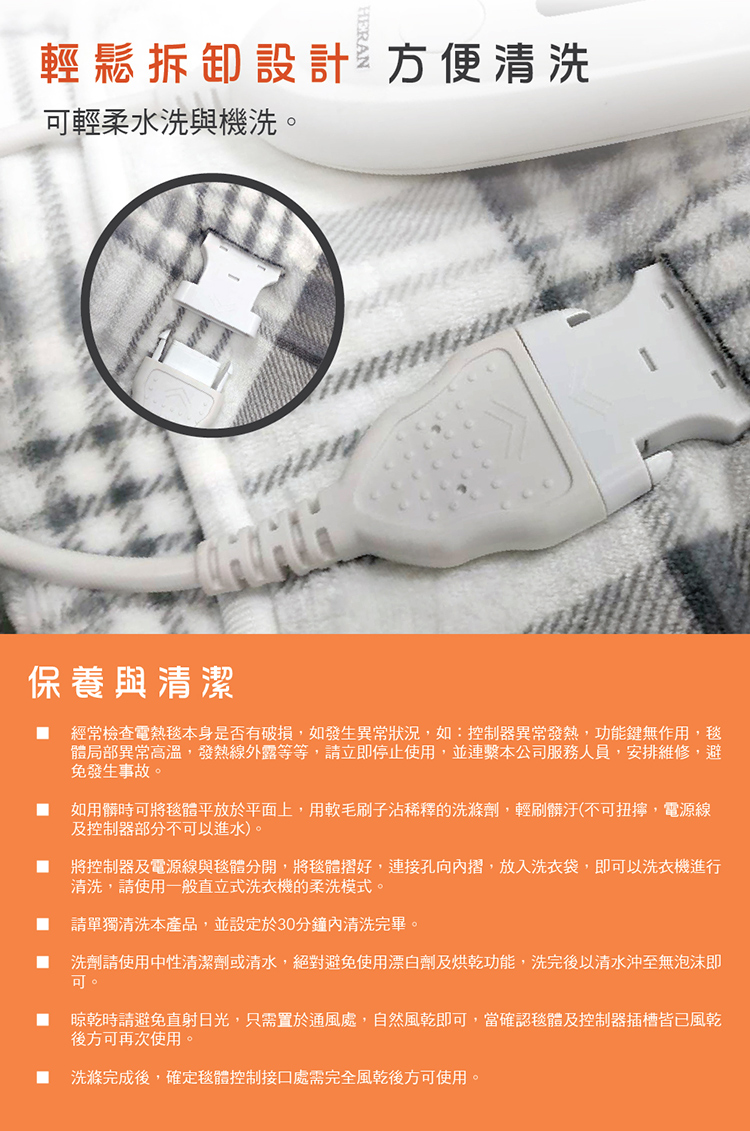 【HERAN 禾聯】披蓋式電熱毯(HEB-12NB010)