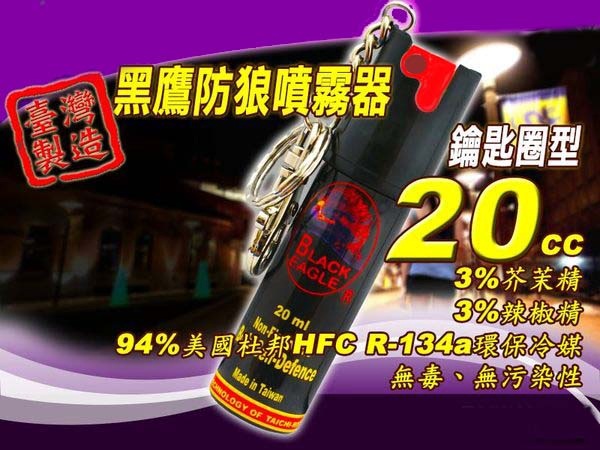 *此噴霧器,不會令人受傷,僅讓攻擊者暫時失去攻擊能力20分鐘