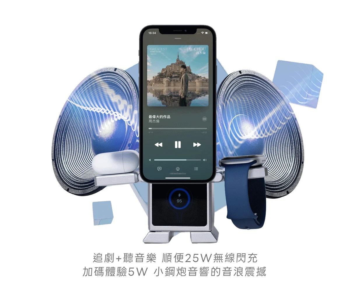 手機/手錶/耳機三合一,同步滿電,速度快 67%