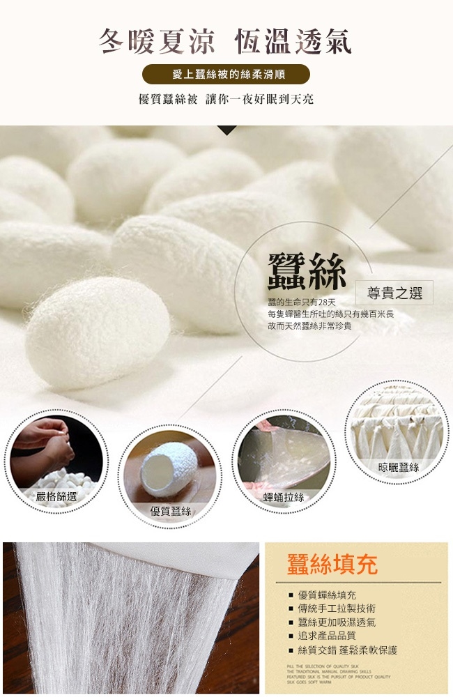 天然嚴選蠶絲,防霉防蹣,輕盈保暖