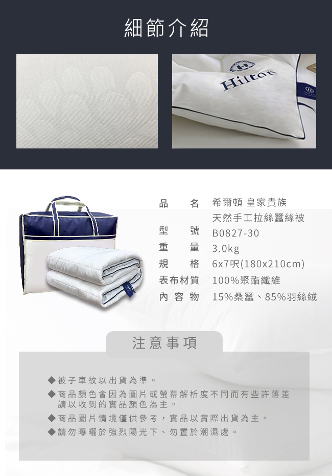 【Hilton希爾頓】睡眠因子手工拉絲頂級蠶絲被3公斤