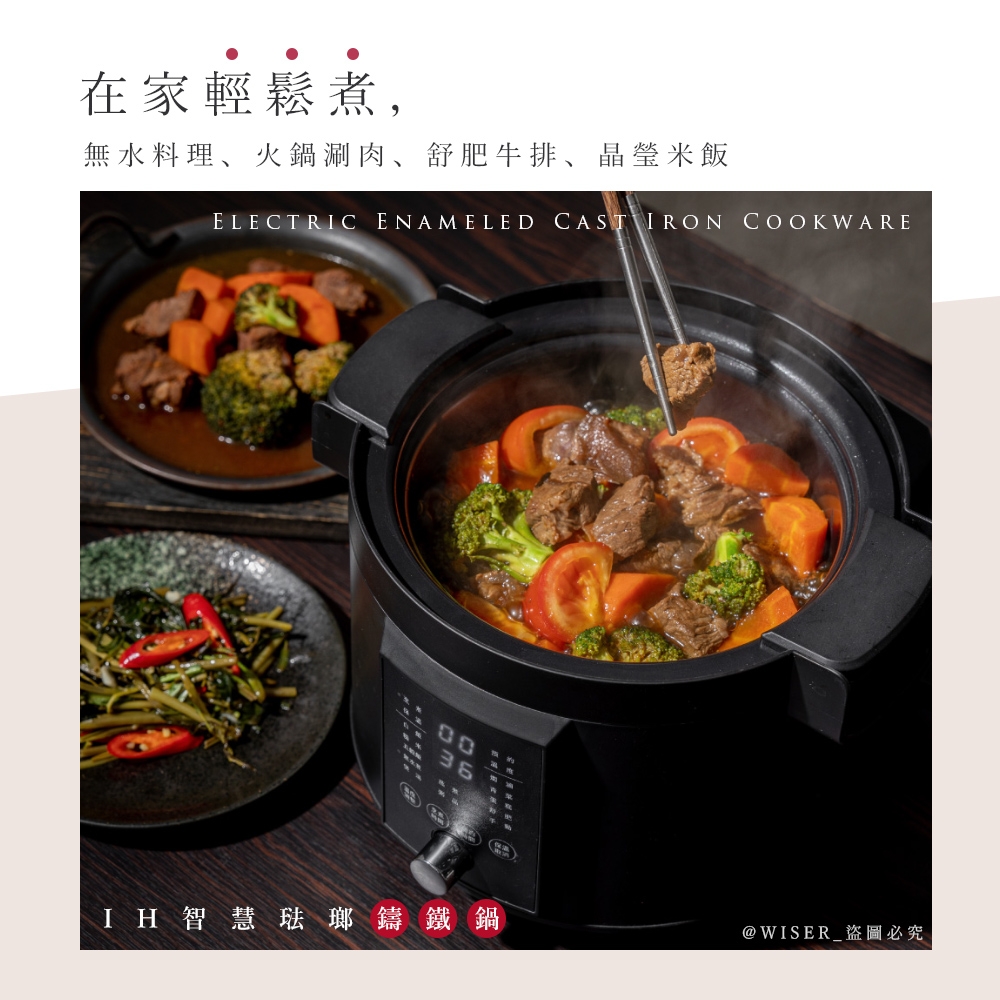 【KINYO】2.2L 智慧 IH 琺瑯鑄鐵電子鍋(PCO-2700) 洽官方LINE索取60折扣碼
