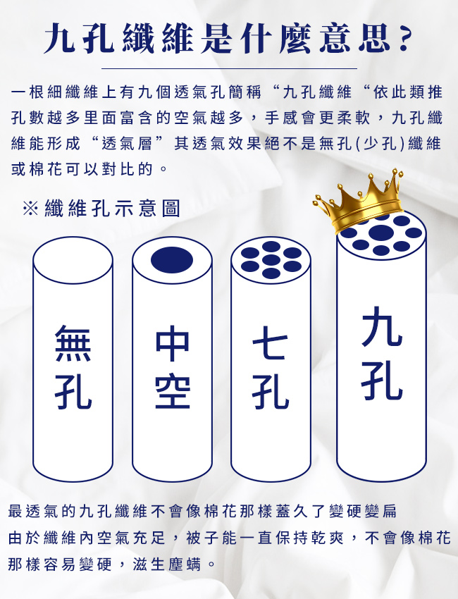 ◆九孔纖維透氣性佳,擴散速度快,保持被窩內最舒適的溫度