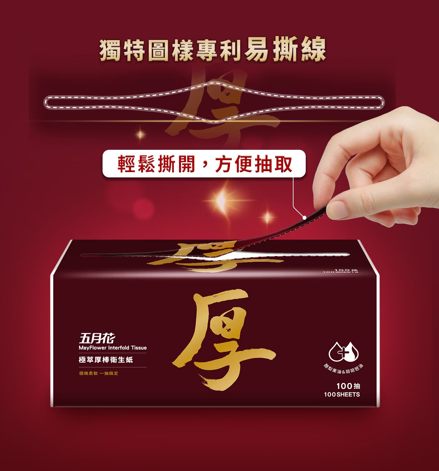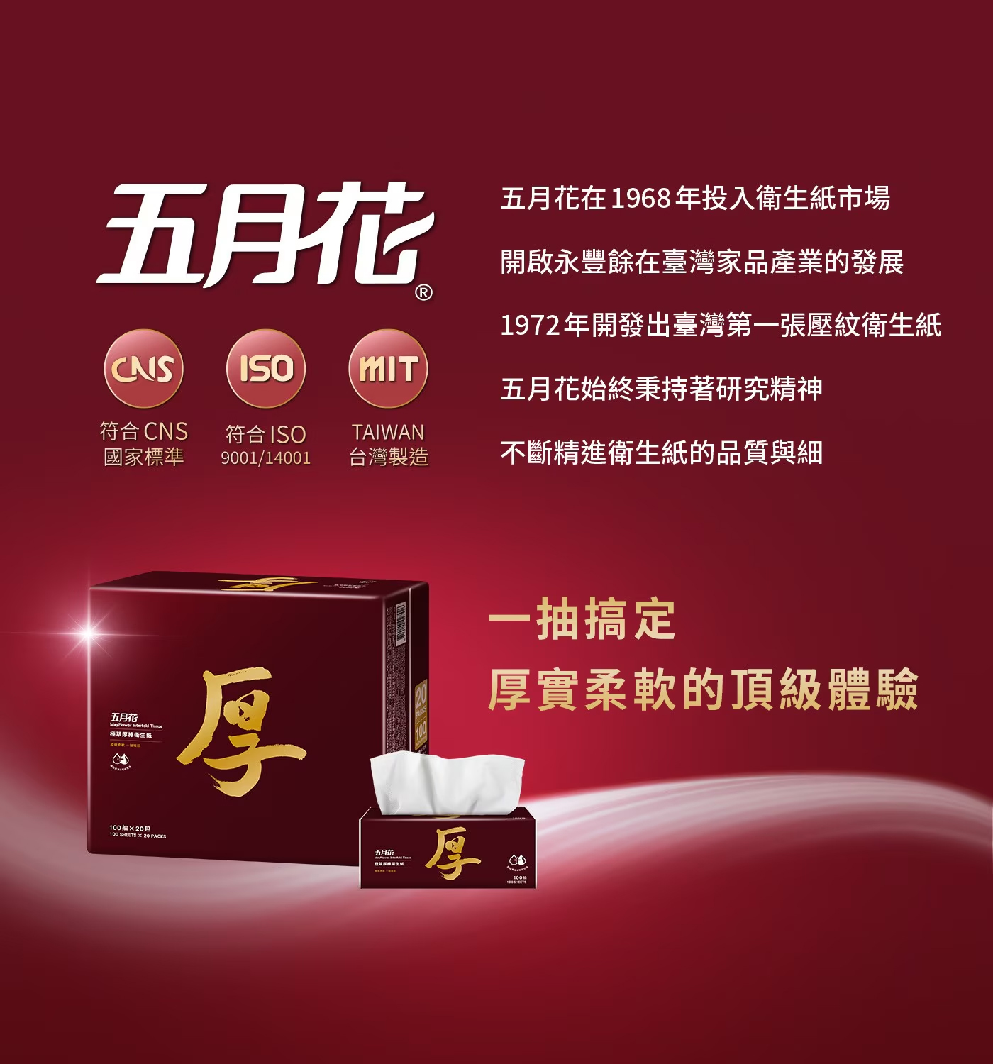 品名:五月花 極萃厚棒抽取式衛生紙 100抽 X 60入