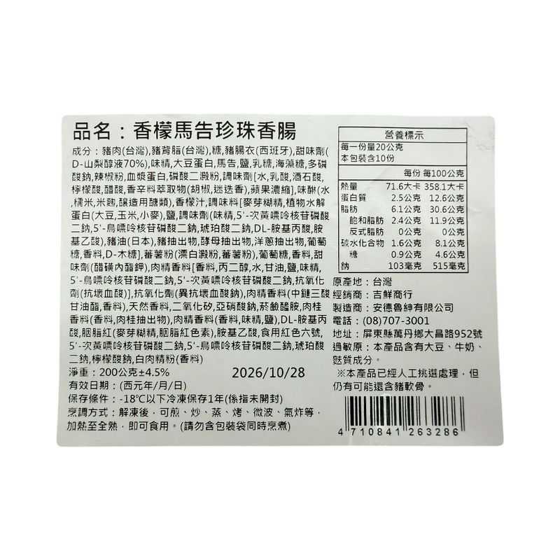 香檸檬馬告珍珠香腸