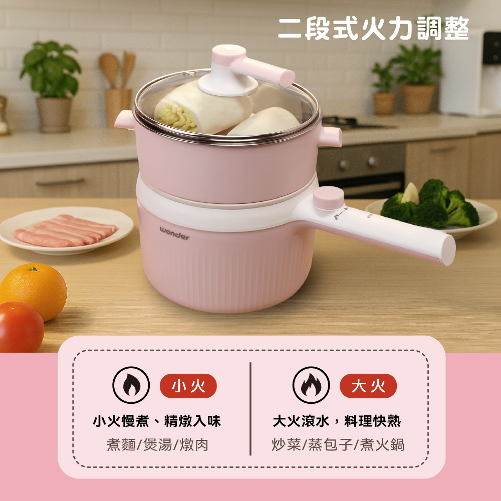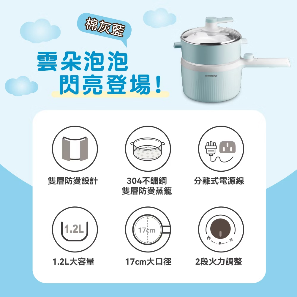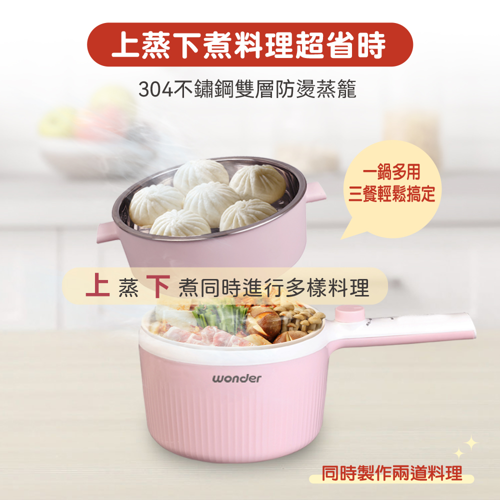 【WONDER】1.2L雙層防燙多功能電蒸煮鍋(WH-K68) 二色任選