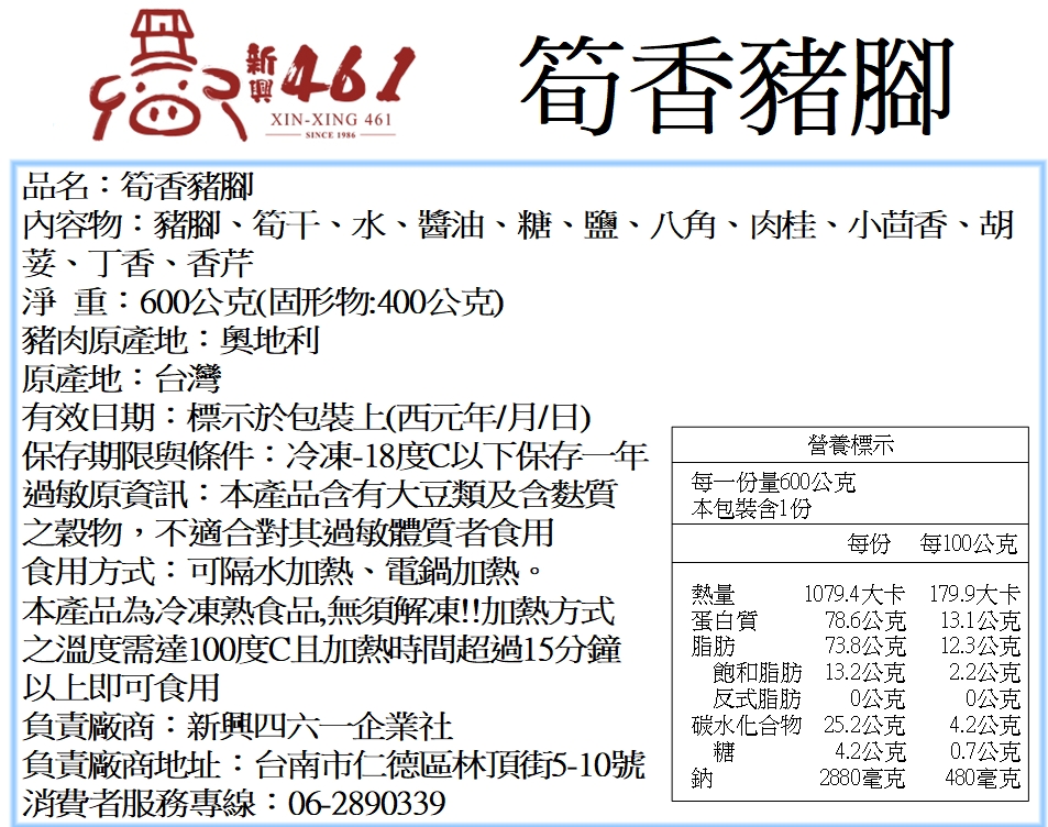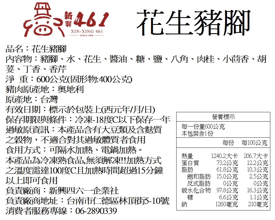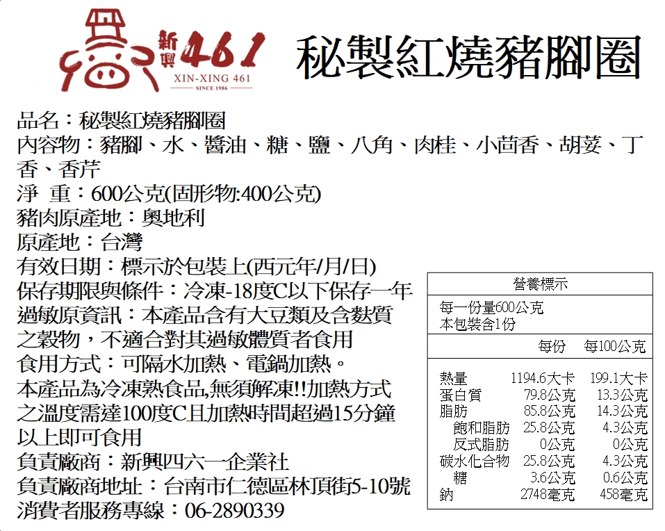 品名:新興四六一 秘製紅燒豬腳(腳圈)