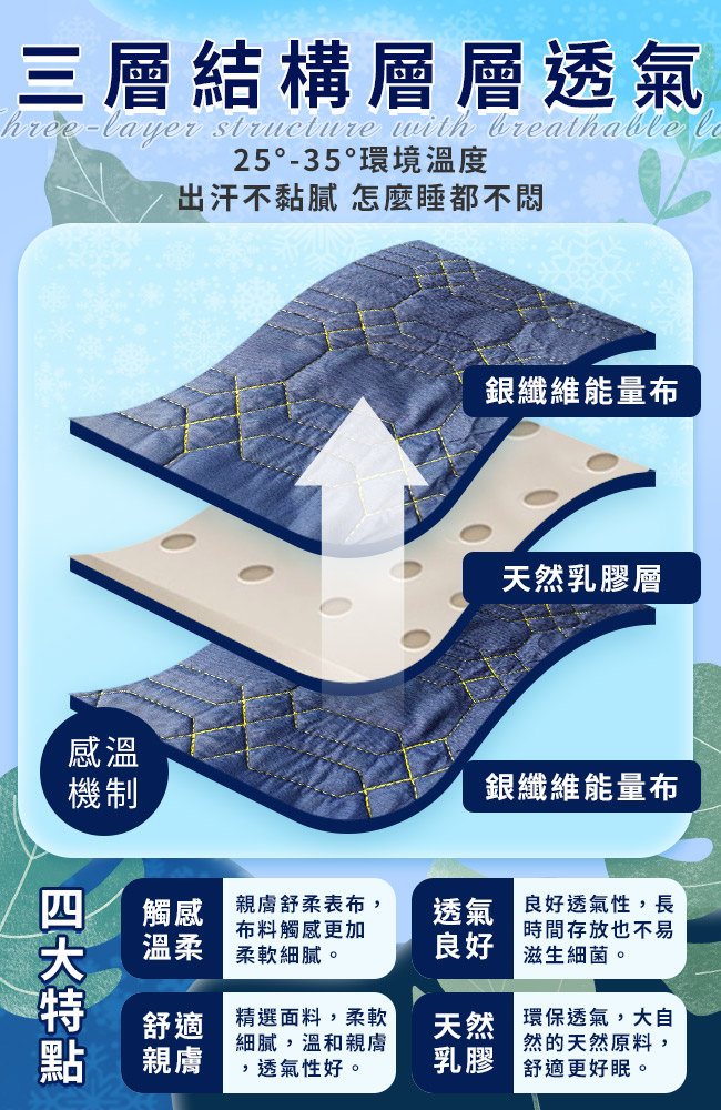 ★可以將人體表面的電荷迅速釋放,健康更升級,透氣表布吸濕排汗處理