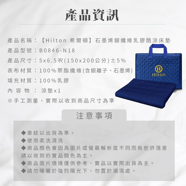 產品名稱:【Hilton 希爾頓】石墨烯銀纖維乳膠雙人酷涼床墊