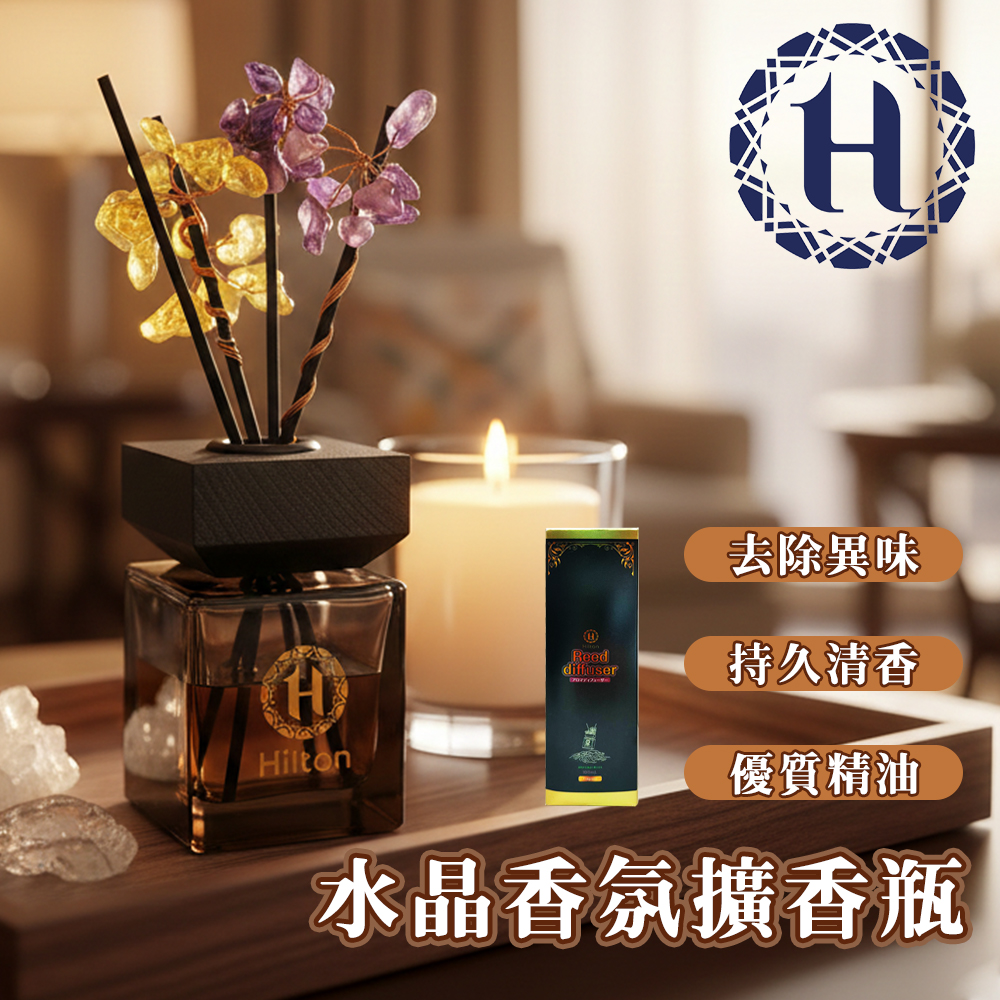 新品【Hilton 希爾頓】水晶招財香氛擴香瓶 (味道任選)