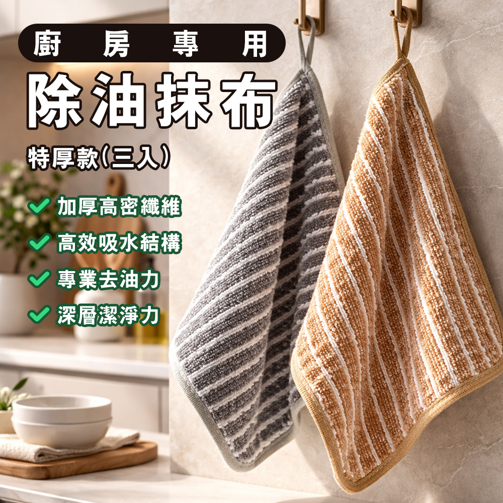 廚房專用除油抹布特厚款(3條入) *2組 兩色任選
