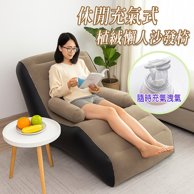 休閒充氣式植絨懶人沙發椅/粉紅色
