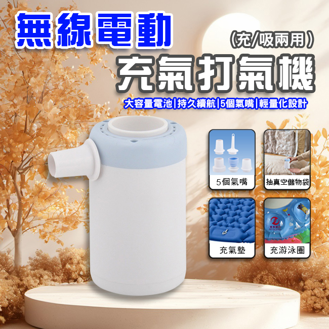無線電動充氣打氣機/抽真空/ 便攜充氣泵(充/吸兩用)