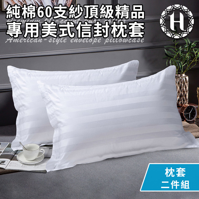 【Hilton 希爾頓】五星級精梳純棉60支紗頂級精品專用枕頭套2入