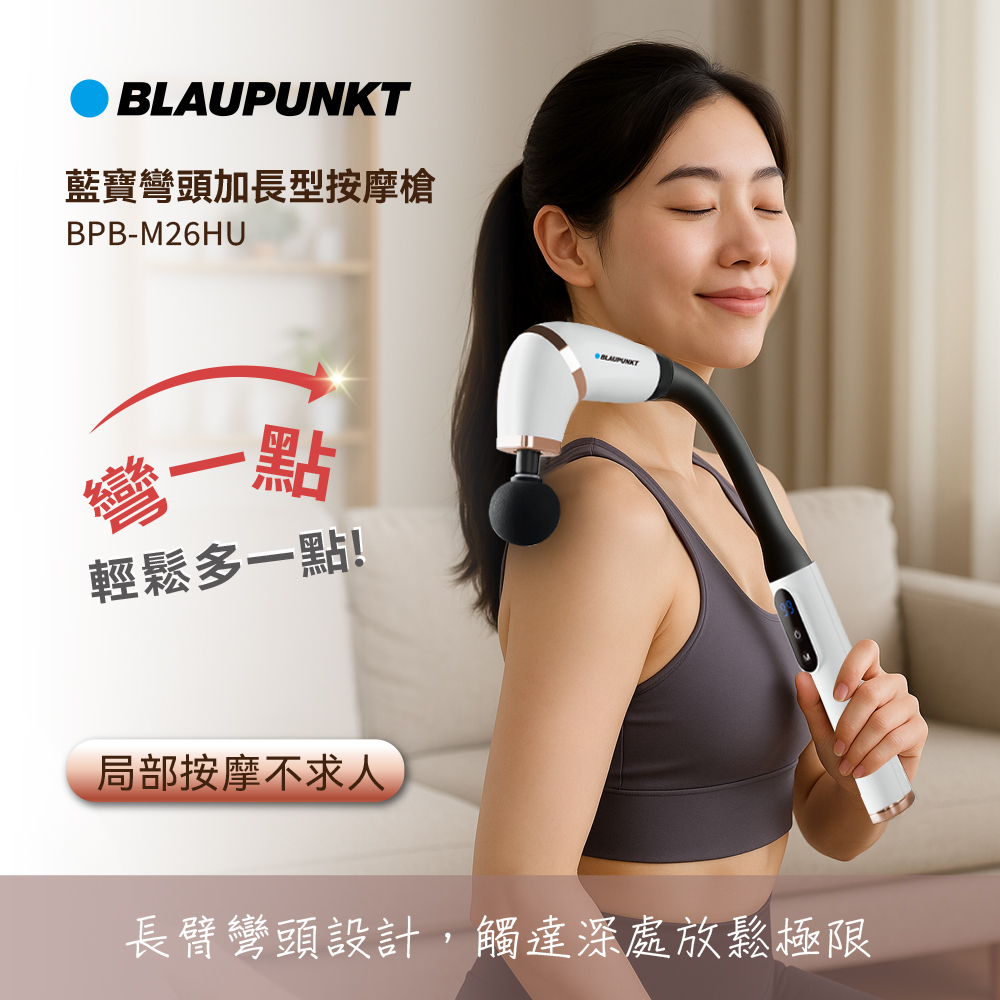 【BLAUPUNKT 德國藍寶】彎頭加長型按摩槍 BPB-M26HU(不求人筋膜槍) 洽官方LINE索取80折扣碼
