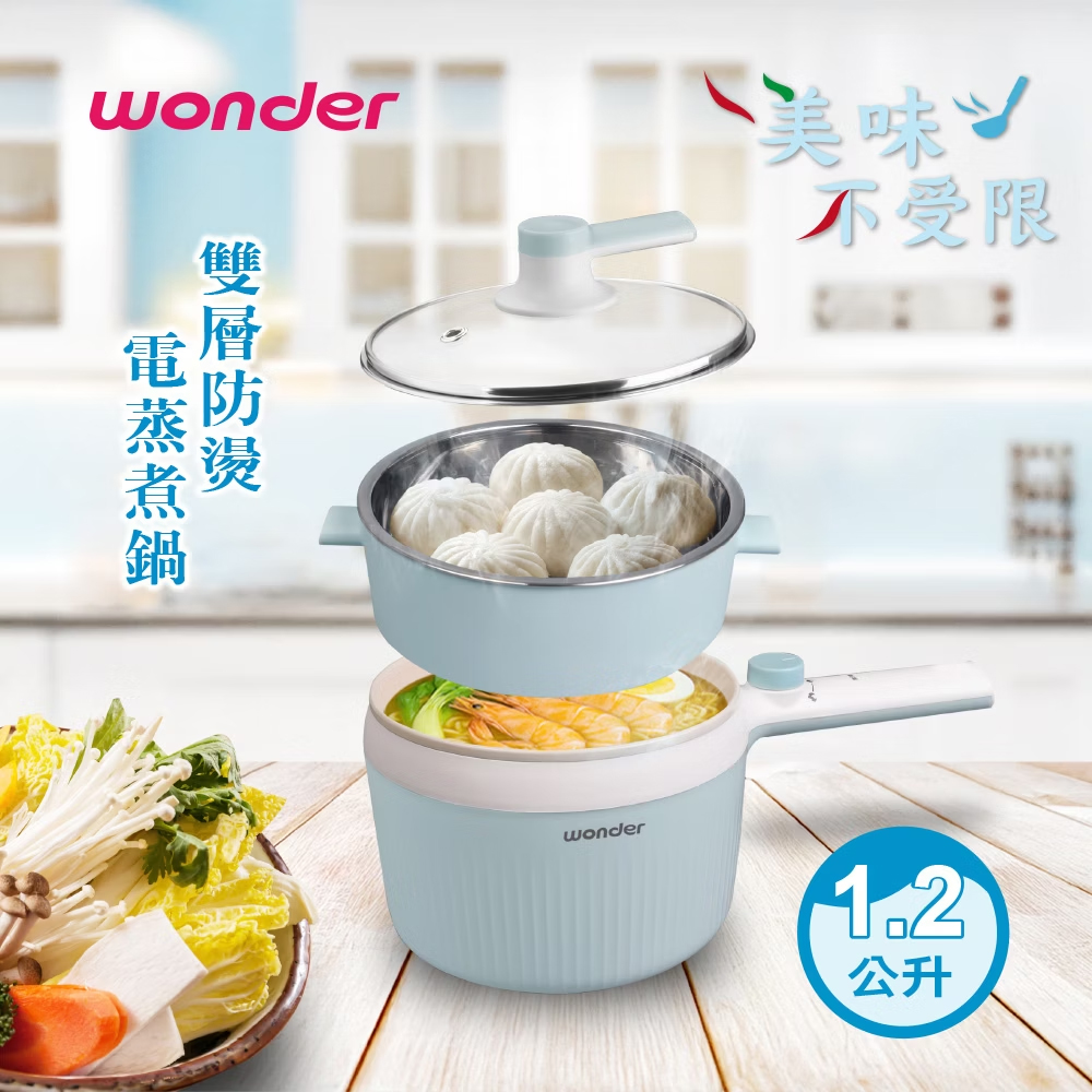 【WONDER】1.2L雙層防燙多功能電蒸煮鍋(WH-K68) 二色任選