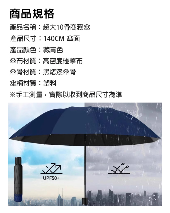 產品名稱:140公分超大折疊商務傘