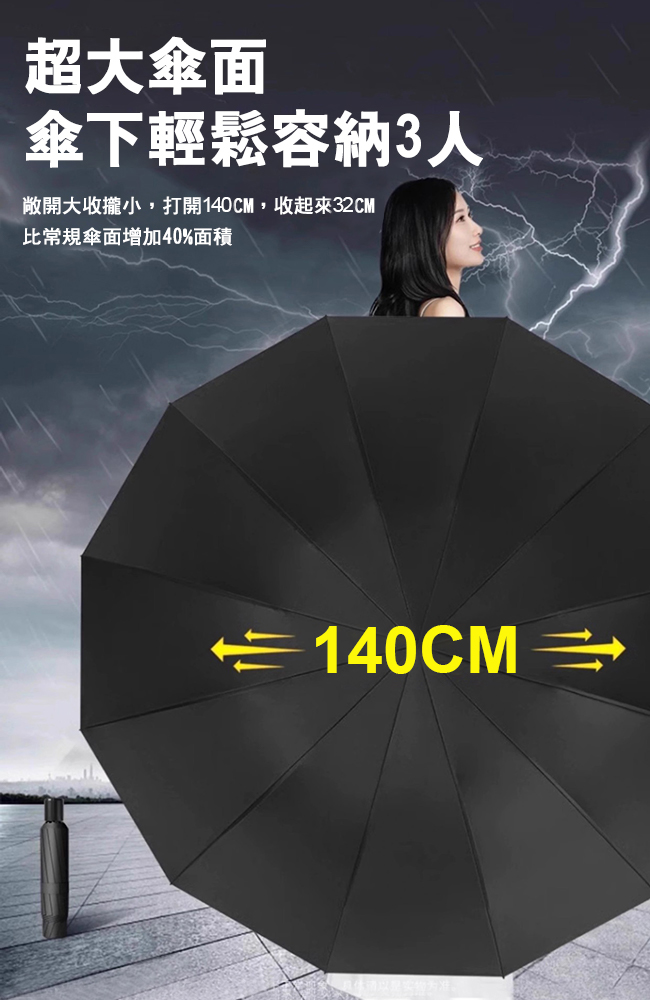 ◆超大傘面140CM,傘下輕鬆容納3人