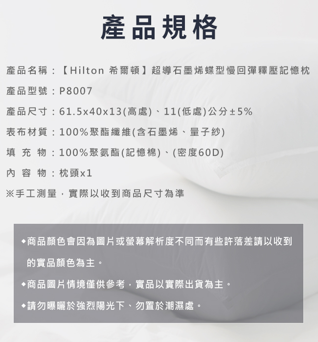 產品名稱::【Hilton 希爾頓】超導石墨烯蝶型慢回彈釋壓記憶枕