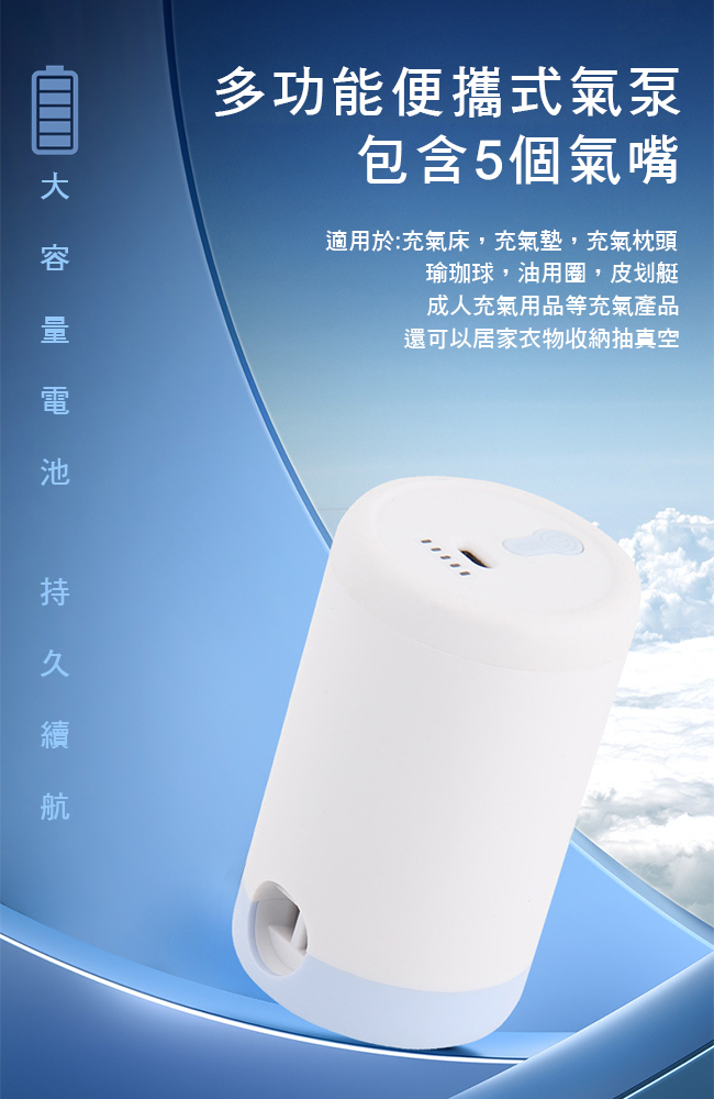 適用於:充氣床、充氣墊、瑜珈球、皮划艇、居家衣物收納抽真空