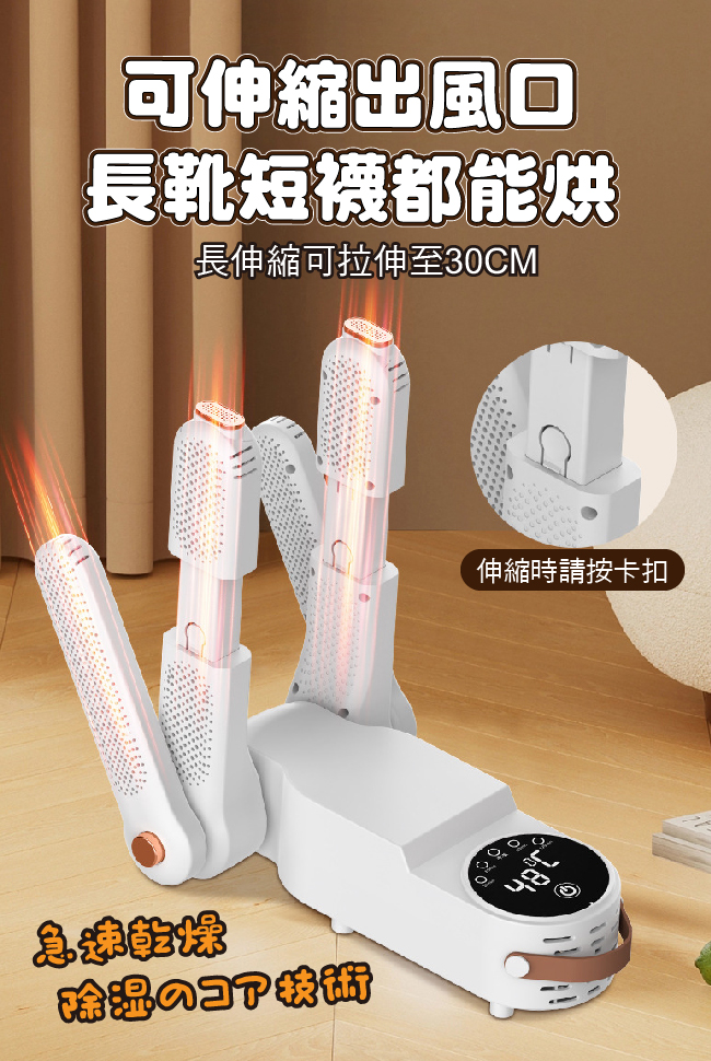 ◆可摺疊收納,根據鞋型可調整合適的角度、可伸縮出風口適用多種鞋款(長短靴都適用)