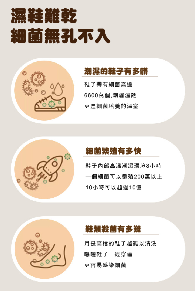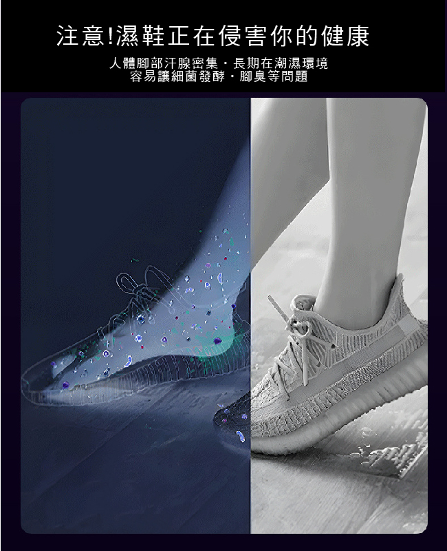 ◆保持鞋子乾燥,臭氧抑菌消毒除臭,避免滋生細菌與異味