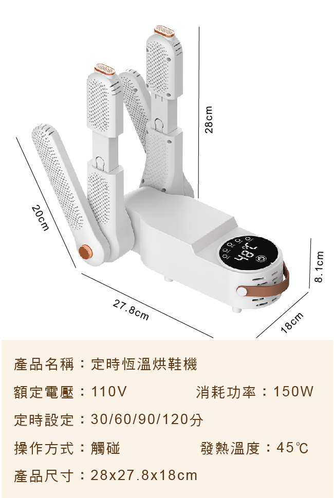產品名稱:定時恆溫智能雙臂烘鞋器
