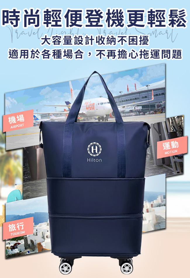 產品名稱:【Hilton 希爾頓】大容量摺疊擴充手提旅行包/二色任選