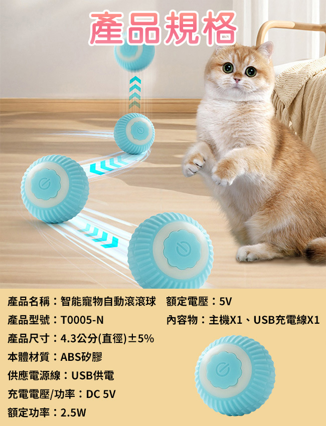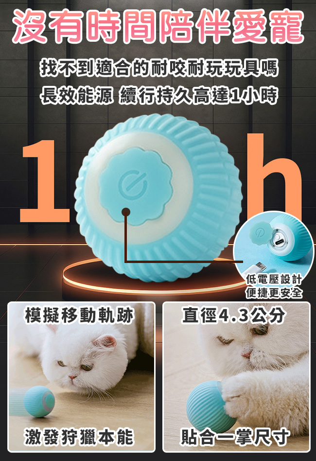 【有熊出沒】USB充電智能寵物自動滾滾球 *2入