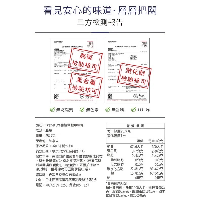 【Frenature 富紐翠】 加拿大 藍莓凍乾 25g x 6包組
