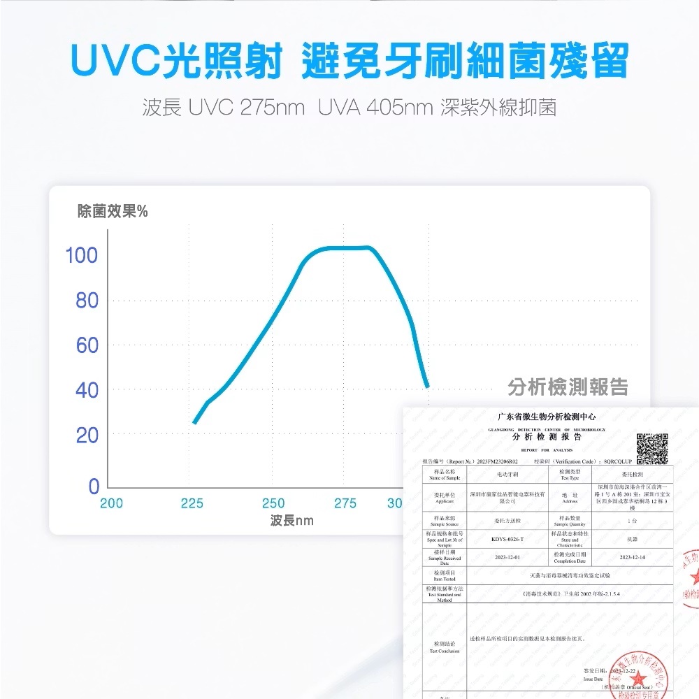 搭載UV燈輔助刷頭乾爽,刷牙更衛生