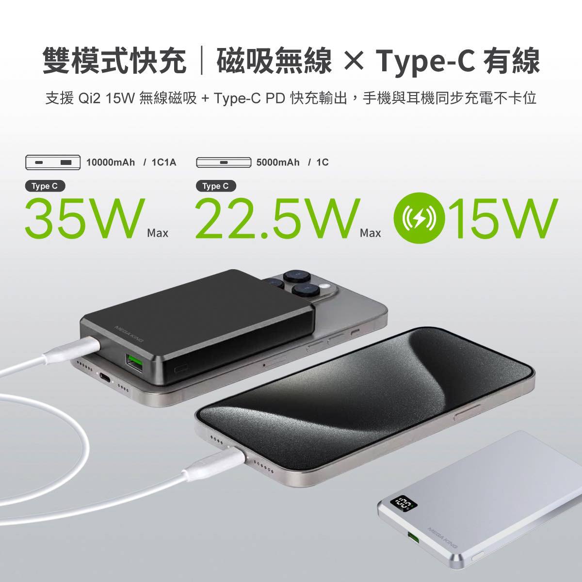 不起火、不漏液,安全性大幅提升雙模式快充,相容Qi2磁吸充電台灣製造,兩年保固 + 投保 5000 萬責任險通過 BSMI、NCC、CCC、FCC、CE 安全認證相容 Qi2 15W 磁吸無線充電支援手機/耳機/多台設備同時供電內建智慧晶片,具備多重保護功能wh標誌符合民航法規,安心帶上飛機規格:‧重量:120g‧尺寸:105x68x9.5mm‧快充:35W‧定額容量:50000mAhhttps://youtu.be/ygWyLJWBMlg