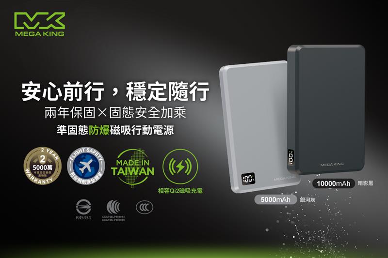 【MEGA KING】10000mAh準固態防爆磁吸行動電源(黑色)