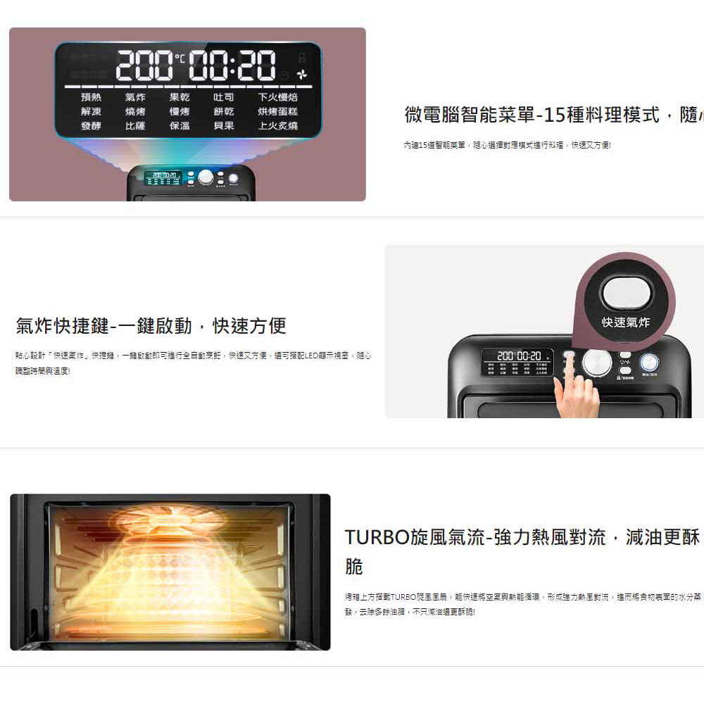 ‧旋風烘烤功能:上方TURBO旋風