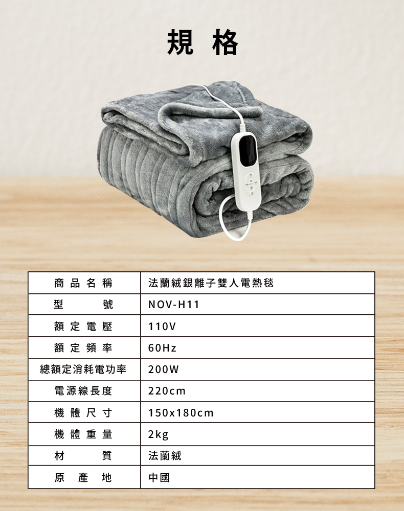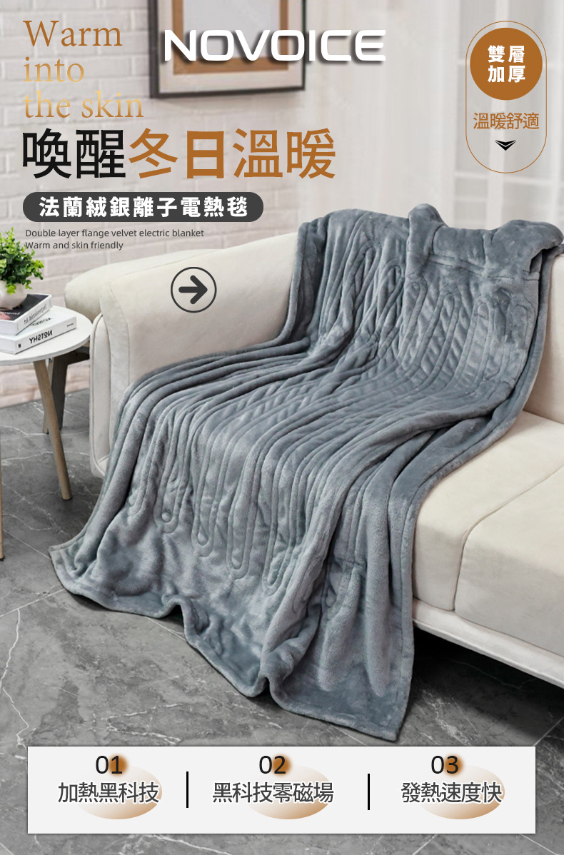 【NOVOICE 諾維斯】豪華法蘭絨銀離子雙人電熱毯 (NOV-H11)